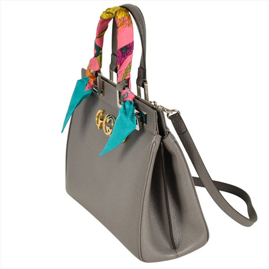 Gucci Zumi Handbag 2WAY Leather 569712 Gray Shoulder Bag Top Handle Women