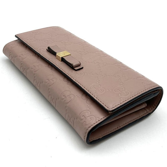 Gucci 388679 2067 Striped Ribbon Long Wallet Pink Beige Leather Women