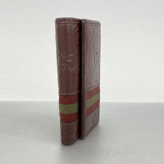 Gucci Key Case Guccissima 138077 Leather Bordeaux Silver Hardware Men Ladies
