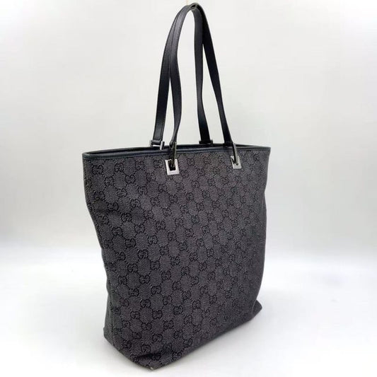 Gucci GG Denim Tote Bag Denim Black Handbag Silver 31243