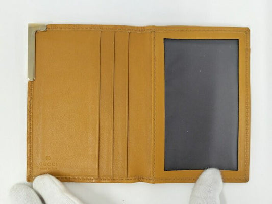 Gucci Trifold Wallet Leather Canvas Beige Brown 181593