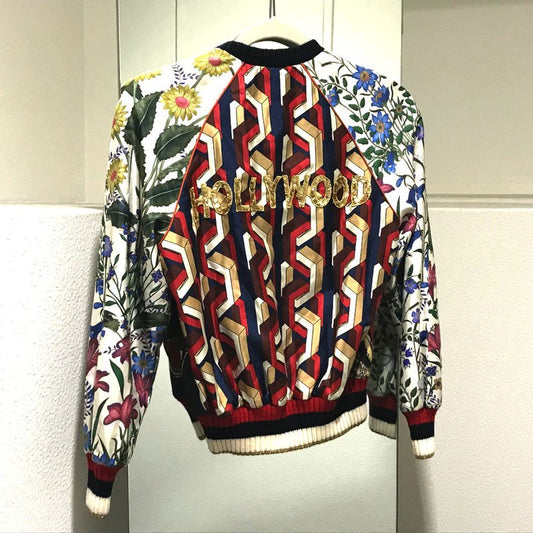 Gucci 476247 Taiga Printed Bomber Jacket Floral Blouson