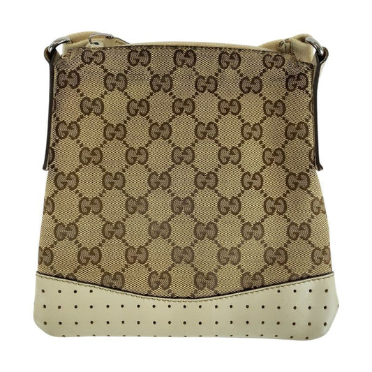Gucci Beige White Silver Hardware GG Canvas/leather 147671 Shoulder Bag
