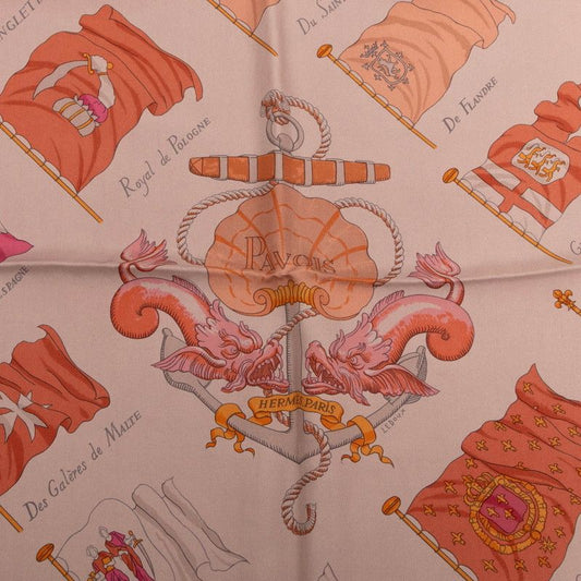 Hermes Carre 90 Pavois Ship Flag Brown Multicolor Silk Women Hermes