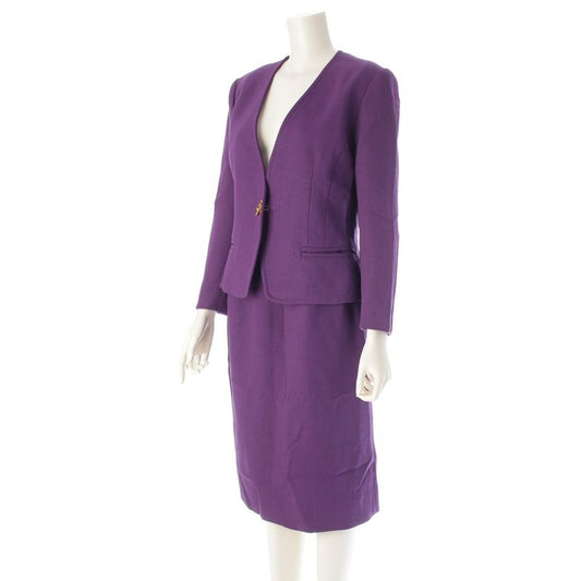 Hermes Wool Toggle T Bar Hardware Collarless Jacket Skirt Setup Purple Gold