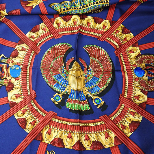 Hermes Scarf Carré 90 Silk Purple Bellflower Red Casy Scarab Pattern Women