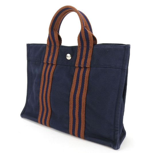 Hermes Tote Bag Fourre Tout PM Canvas Navy Brown Silverhardware Casual Usual