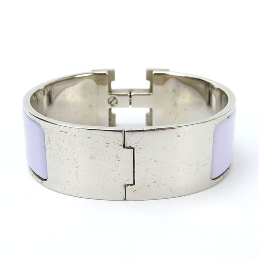 Hermes Bracelet Bangle Click Clack Click H Purple Silver Enameled Accessories