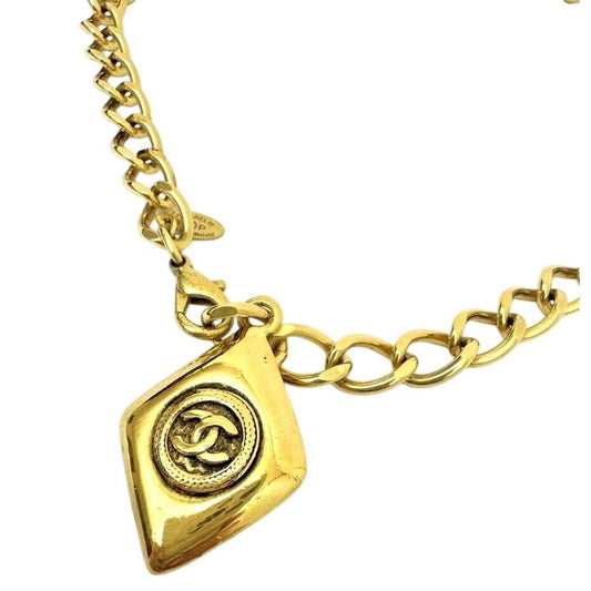 CHANEL CC Vintage 24K Necklace Choker Rhombus Logo Gold 93P