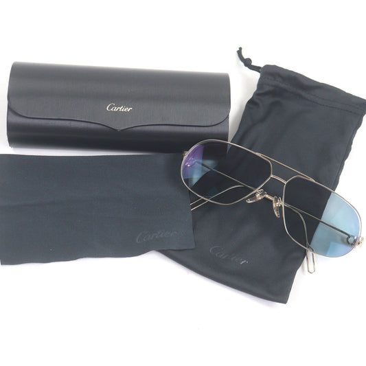 Excellent Condition Cartier Ct0111s 2c Two Bridge Sunglass Es Gold Blue