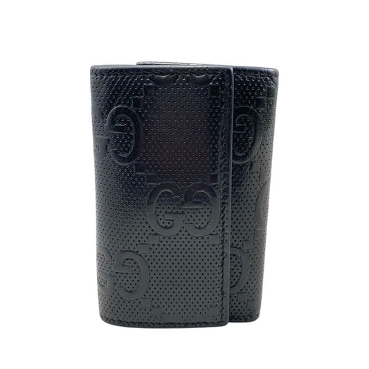 Em0553 Gucci Key Case Men's 625565 GG Embossed 6-ribbon Black