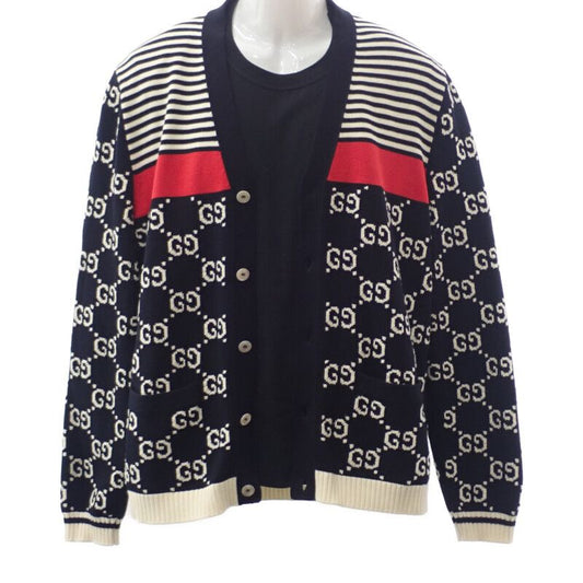 Gucci Striped GG Jacquard 523048_x9107 Cardigan Cotton Navy Men Casual [A Rank