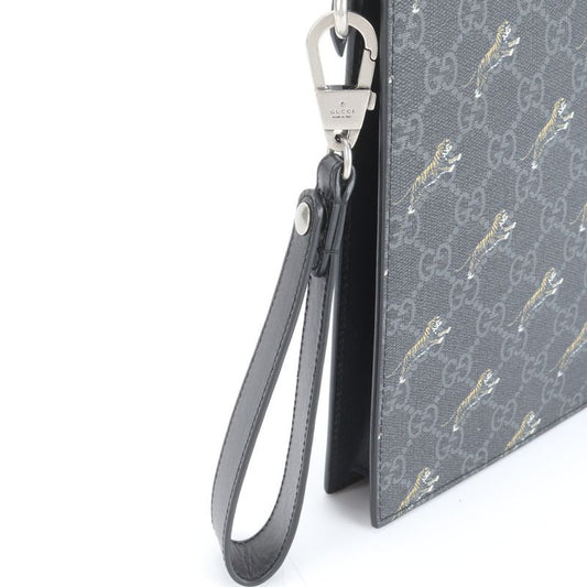 Unused Gucci GG Supreme Taiga Print 575136 Leather Second Bag Clutch Black