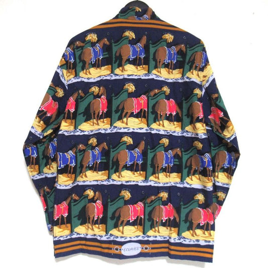 Hermes Vintage Ecuries Stable Scarf Pattern Serie Button Stand Collar Shirt