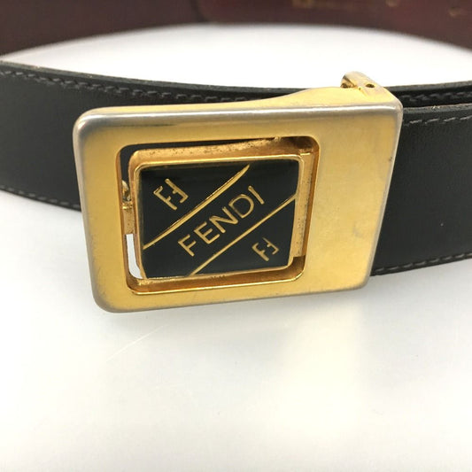 Fendi Sas Buckle Logo Leather Belt Vintage 250-70077 Black X Brown