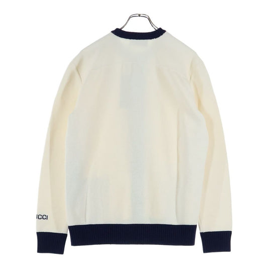 Gucci Sleeve Logo Intarsia Crew Cotton Knit Long Sleeve Cardigan White/navy