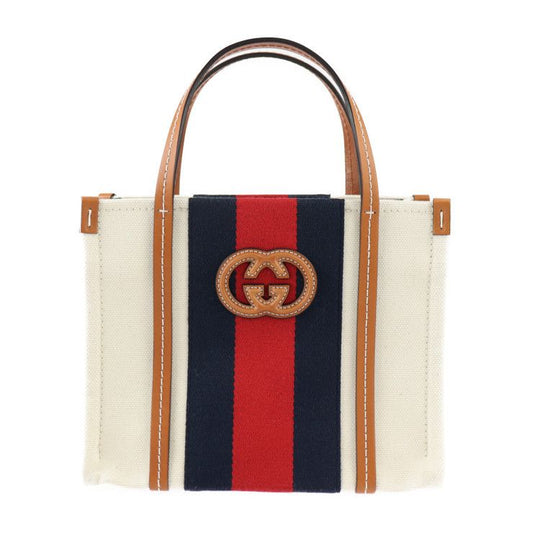 Gucci Interlocking G Mini Tote Handbag 727735 Canvas Leather Beige Red Navy