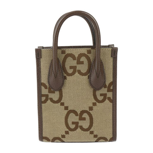 Gucci Mini Tote Handbag 699406 Jumbo GG Canvas X Leather Beige Brown Gold