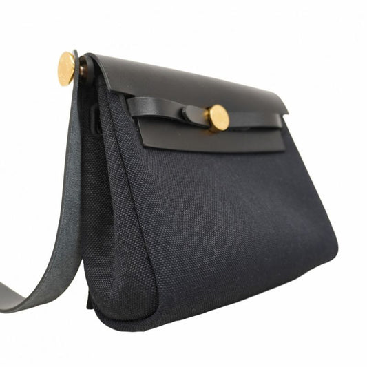 Hermes Shoulder Bag Herbag Zip Mini Toile Military Black Gold Hardware K