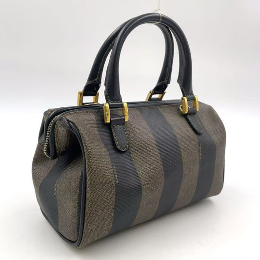 Fendi Pecan Pattern Mini Boston PVC Khaki Brown And Black Handbag Gold
