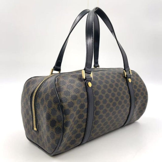 Celine Macadam Pattern Mini Boston Leather X PVC Brown X Black Handbag Gold