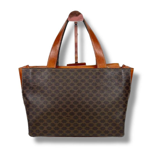 Celine Mini Tote Handbag Macadam Pattern Pvcleather Brown