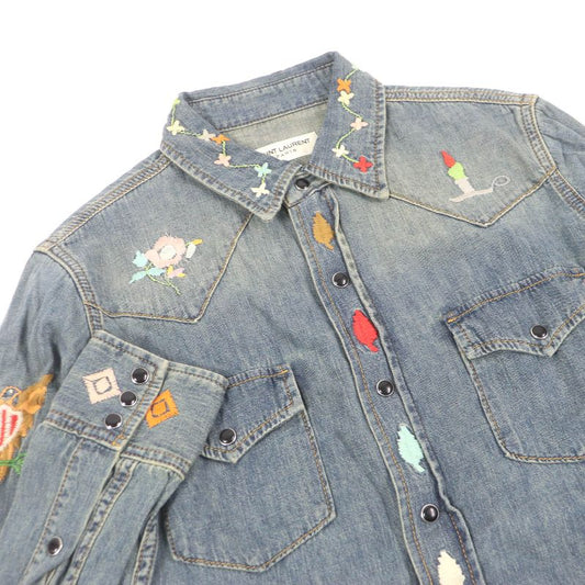 Saint Laurent Paris 530376 100% Cotton Embroidery Long Sleeve Denim Western