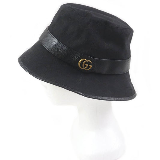 Gucci 576587 GG Canvas Leather Piping Fedora Hat Bucket Hat Black M/58cm