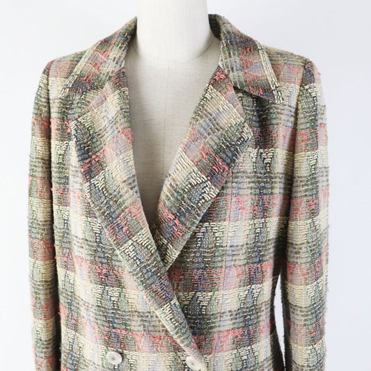 CHANEL Vintage 98P P10460 Wool Silk Blend Coco Mark Button Double Breasted