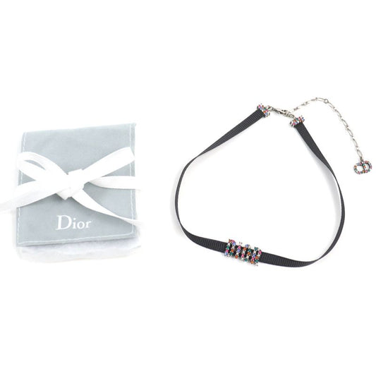 Christian DIOR Logo Choker With Rhinestones Black Multicolor Storage With Bag