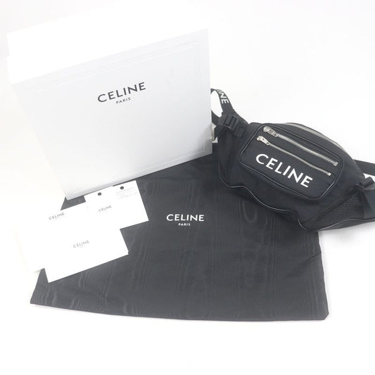 Celine 19868 Nylon Trekking Belt Bag Logo Print Body Bag Waist Pouch Black With
