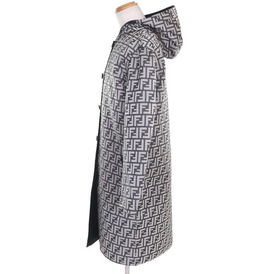 Fendi Ff0249 FF Logo Pattern Reversible Hooded Coat Grayish Black 46 With