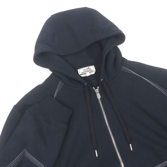 Hermes 24SS Piqures Cinetiques H Logo Zip Stitch Design Hoodie Navy L Made In