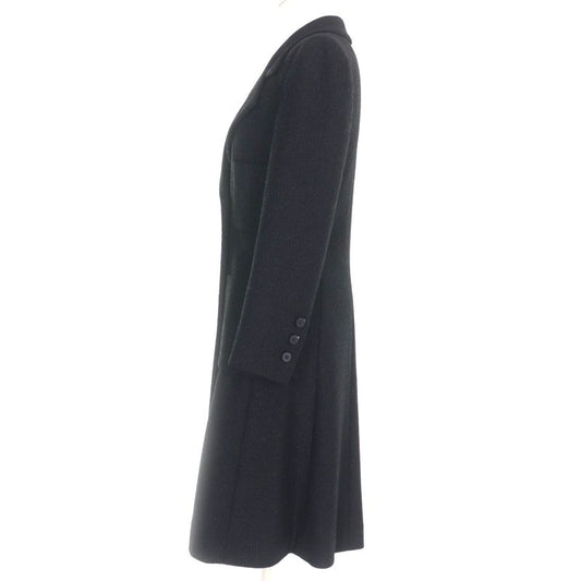 CHANEL Vintage 01A P18163 Logo Button Lined 100% Silk Tweed Long Coat Black 36