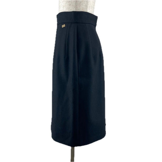 CHANEL P41438 Wool Cashmere Blend Coco Mark Button Knee Length Tight Skirt