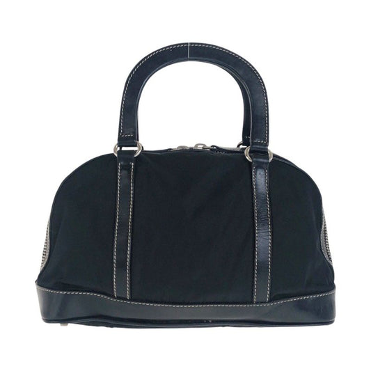 Prada Tessuto Triangle Logo Plate Black Silver Hardware Nylon Leather Handbag