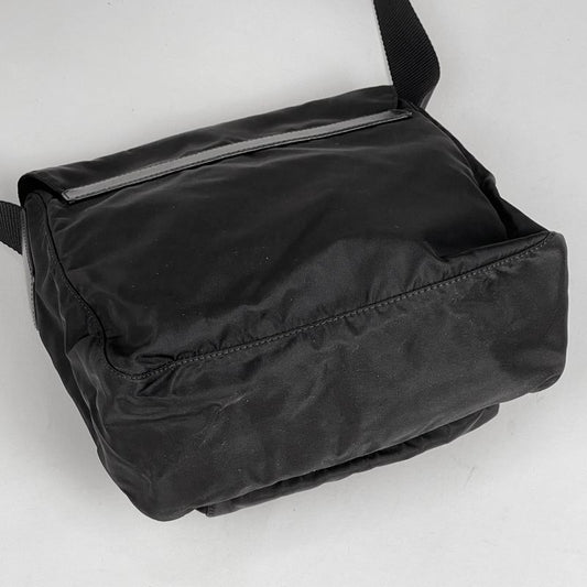 Prada Shoulder Bag Nylon Messenger Bag Nylon Leather Black Silver Hardware