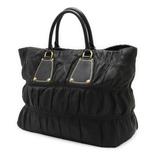 Prada Gather Tote Large Tote Handbag Leather Nero Black Gold Hardware Bn1232