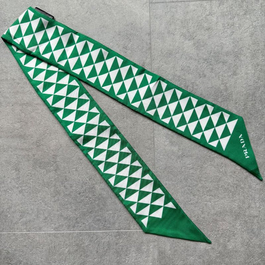 Prada 1ff008 Twill Silk Scarf Triangle Green with Box