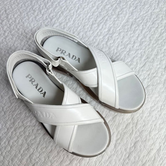 Prada Logo Thick Bottom Cloudbust Air Sandals Sport Sandals Cross Leather White