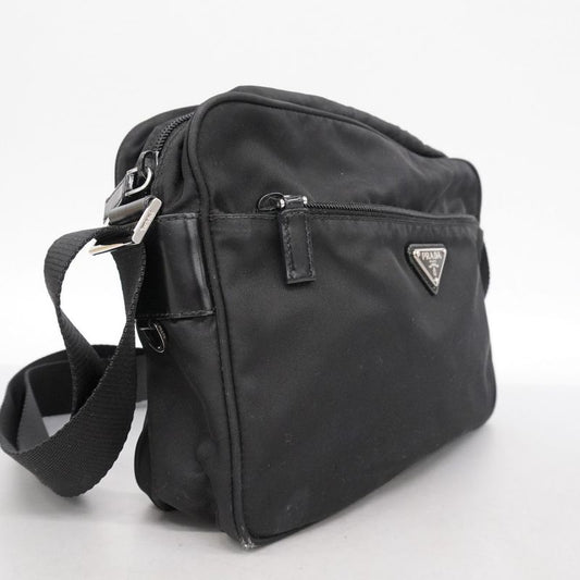 Prada Shoulder Bag Tessuto Nylon Black Silver Hardware Men Women Unisex