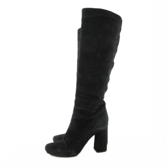 Prada Long Boots 36.5 22.5cm (8.86in) Shoes High Heel Chunky Heel Suede Black Ae