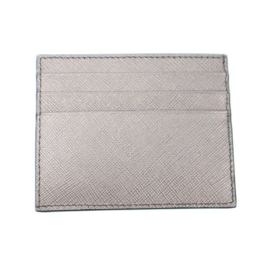 Prada Logo Plate Saffiano Leather Card Case 1mc223 Silver
