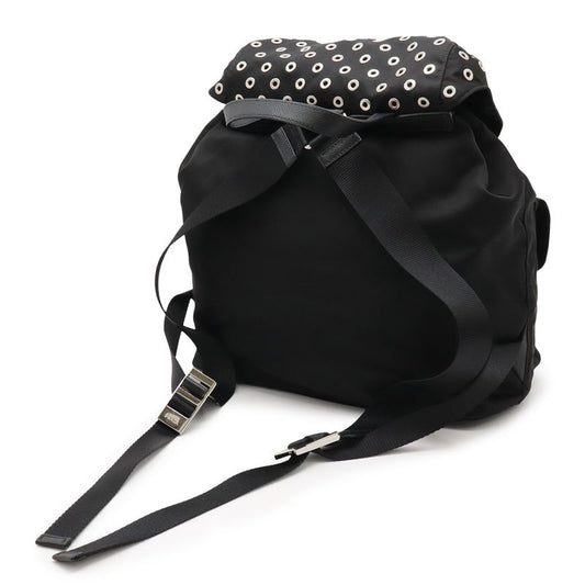Prada Grommet Triangle Logo Backpack Sac Perforated Nylon Leather Nero Black