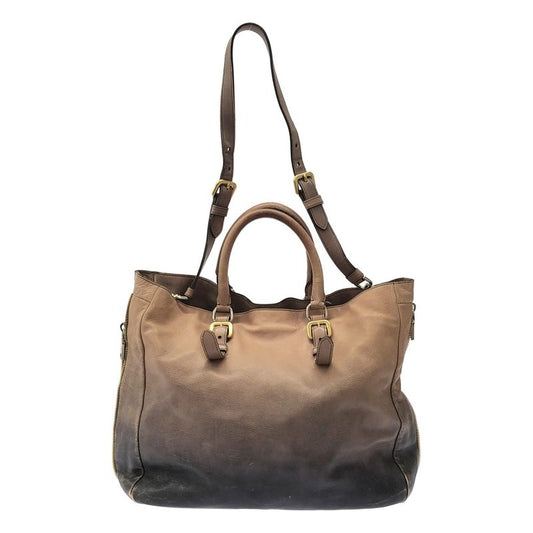 Prada Glace Zippers 2wayleather Bag Bn1592 Beige Black