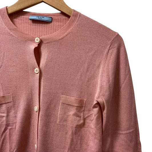 Good Prada Wool Silk Crew Neck High Gauge Knit Cardigan Size 40 Pink Women Used