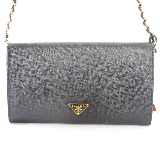 Good Prada Saffiano Leather Heart Motif Turnlock Chain Wallet Bt770c Black