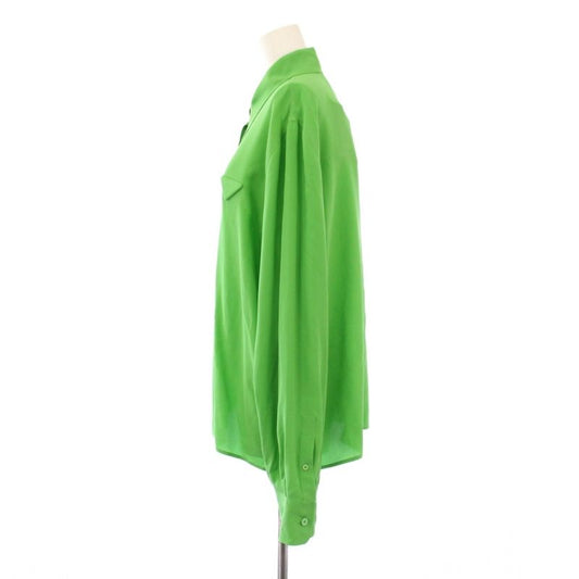 Prada Tagged 22ss Silk Shirt Blouse Long Sleeves 42 Green P473f KH