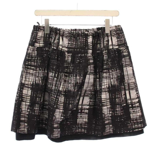 Prada Flared Skirt Mini Length Full Pattern Bicolor Silk 40 Black White BB