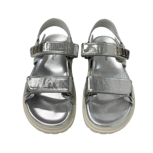 Christian Dioract Sandals Shoes Leather Metallic Silver Unused Logo Lambskin